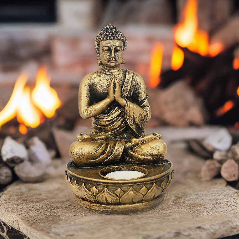 Свічник Будда – об'ємний, авторський виріб власного виготовлення. Цей свічник не просто прикрасить ваш інтер'єр, а й підкреслить ваш вишуканий смак, принісши успіх. Фігура Будди, згідно з фен-шуй, символізує мудрість, духовність, знання та прагнення до доброї мети. Розмістіть цю фігурку вдома, в офісі, у тематичному ресторані, кафе чи фотозоні, щоб створити особливу атмосферу. Цей свічник також відмінно підійде як подарунок друзям та близьким на новосілля. Виріб виготовлений зі штучного мармуру та покритий золотом. У комплект входить свічка-таблетка. Не пропустіть можливість придбати цей унікальний виріб, який стане не лише прекрасним елементом декору, а й символом духовності та мудрості.Характеристики